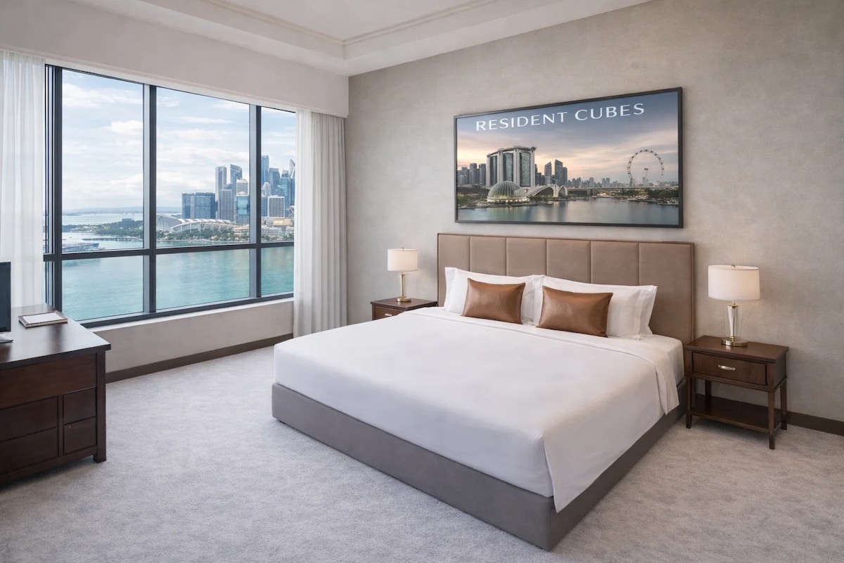 The Grand Deluxe Waterfront Room features a spacious sqm, air-conditioned layout with a king bed, private bathroom, and premium touches like complimentary toiletries, bathrobes, and slippers. Guests can enjoy a flat-screen TV, minibar, wardrobe, safe, and sweeping views of the Singapore River for a truly relaxing stay. This unit has 1 King bed.