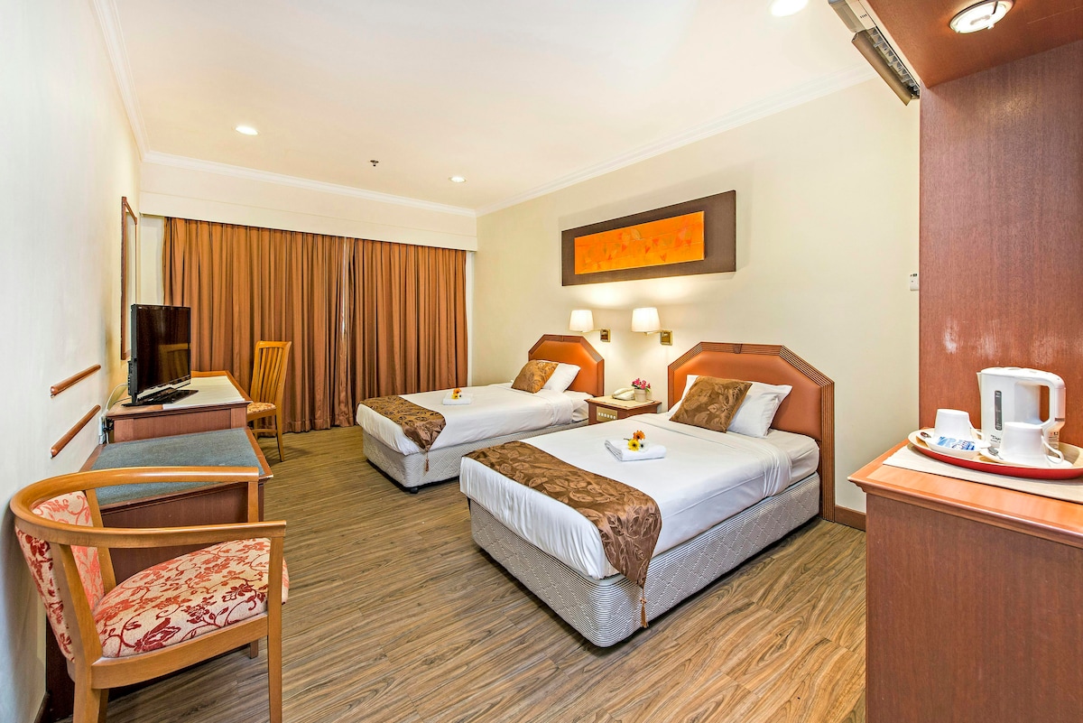 Unwind your stay in Hotel Royal Plaza on Scotts's roomy Deluxe King Room, where chic design meets cozy comfort. Relax under the room's walk-in rainshower and sink into our plush Simmons Dream Bed, ensuring you drift into restful slumber every night. Size: 32sqm | 344sqft Room Maximum Capacity: 2 Adults & 1 child (below 11-years-old in existing bedding)*