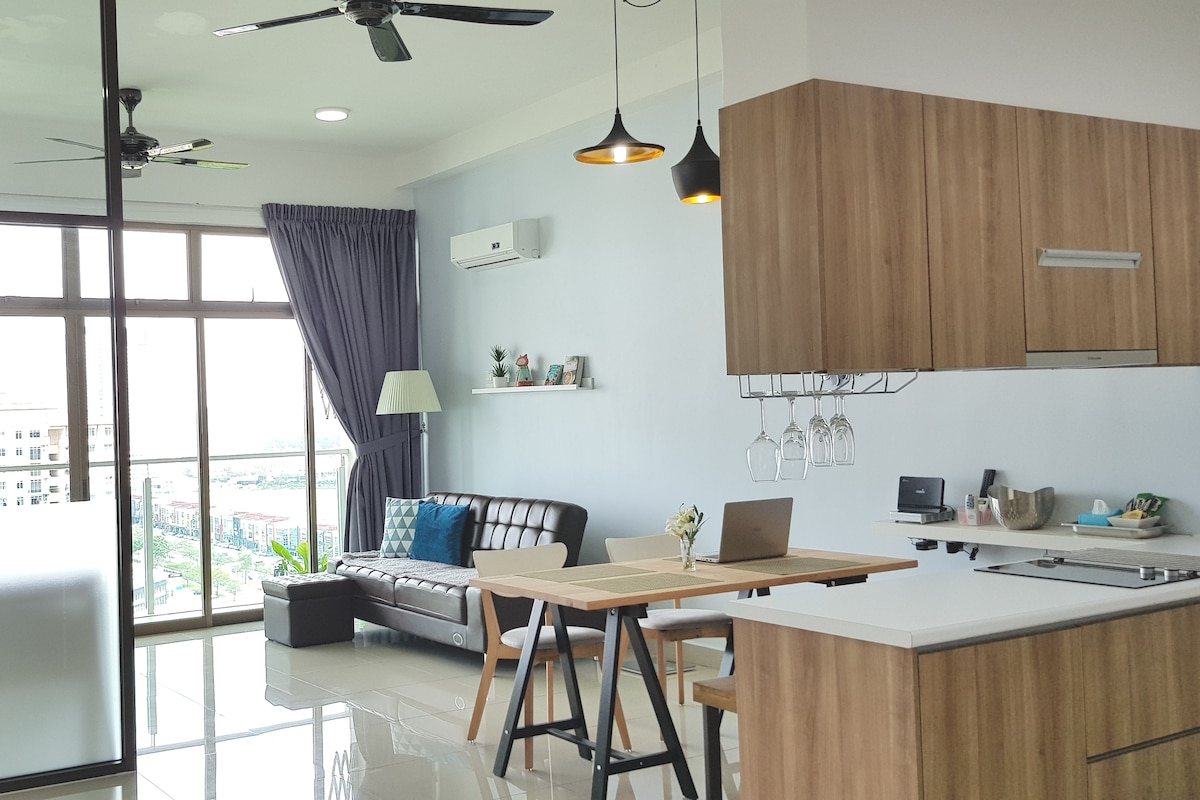 欢迎来到新山! 这个公寓位于马来西亚的最南部。我们和新加坡只有1公里的距离。如果您想探访新加坡或者去legoland玩的话,这个公寓绝对是个很好的选择!因为我们就在legoland门口对面,加上去新加坡的巴士站就在我们公寓对面,走几步就到了。非常方便! 也许公寓的外表没有非常的美观,但我相信当您踏入我们的房间时,会有不一样的观感! 我们的设计来自中美洲和欧洲,希望这样的组合在您一踏入的时候,能带来一个温暖和舒服的感觉。我们也尽可能提供您所需要的东西,并及时回复您的问题。 Iskandar这个地区很特别,因为跟其他地方相比,很多游客景点都集中在这里。不单单景点,这边也有国际学校、出名医院Gleneagles和Puteri港口,可以乘船到Pulau Batam/Bintan! 在这里,您可以探索很多不同的景点和餐馆。身为您的主理人,我很乐意帮忙!希望您在我们的家能够有个非常开心,舒适的休息体验!欢迎您的预订😊