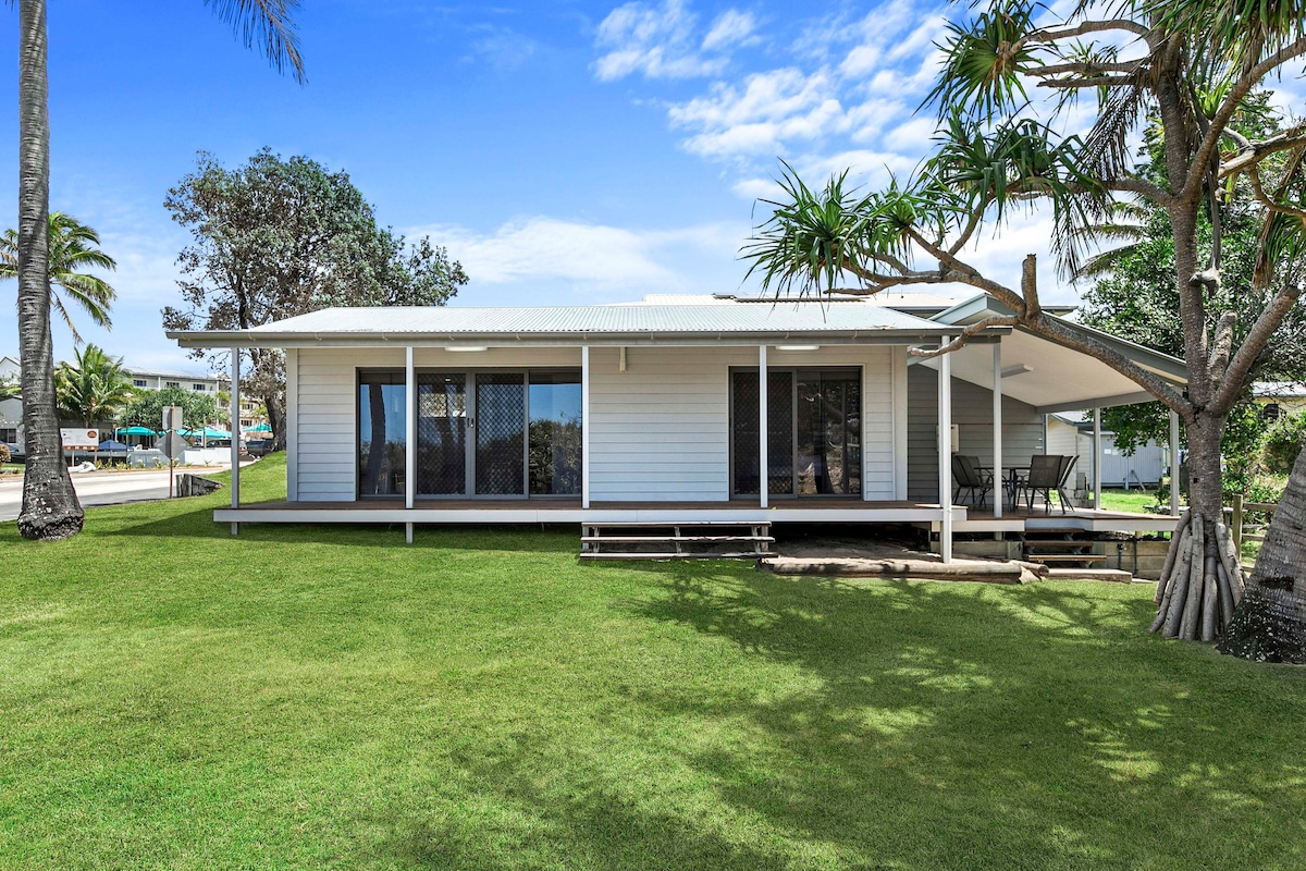 Absolute beachfront home - “Moananui” (New Zealand Maori word meaning ‘big sea’) is the perfect place to relax, refresh and renew at the tranquil seaside town of Toogoom, 15 mins from Hervey Bay. The cute 3 bedroomed brick and tile home is only a few steps away from the beach. It is perfect for families or couples needing a restful get away. The beach is safe for children and is ideal for walking, swimming, kayaking or standup paddle boarding. Book your beachfront home to relax and unwind!