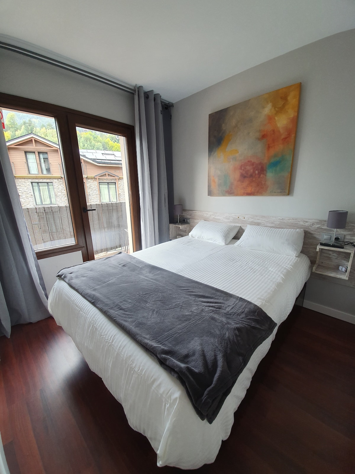 Forget your worries and enjoy the surroundings. The apartment has a large living room and magnificent views of the mountain; a kitchen area integrated into the living room, a balcony, two double bedrooms and a bathroom with a bathtub. You can access, interconnecting through the complex, the Josep Serra chairlift that connects with the Arinsal ski resort in winter and the Comapedrosa natural park is only a few minutes away. The downtown area of Arinsal is 400m.