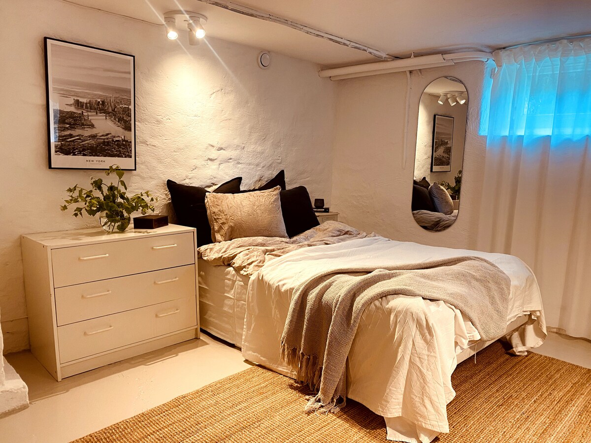 Fräsch och modern källarlägenhet i centrala Örebro med egen ingång, uteplats och gratis parkering. Lägenheten är ca 26 kvm och har eget badrum och kök. Köket är utrustat med kyl med frysfack, spis, Airfryer, kaffebryggare, vattenkokare och brödrost. Gratis Wifi och TV-skärm med chromecast. Elbilsladdare finns mot extra kostnad. Ca 15 min promenad till stationen och knappt 2 km till centrum. 200 m till närmaste busshållsplats. Max 10 min promenad till närmsta mataffär.