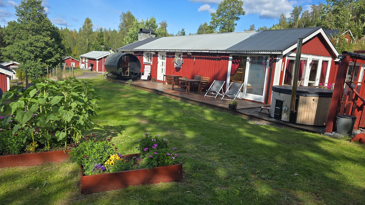 Kopla av med hela familjen i detta fridfulla boende. Kasta in ved i badtunna och bastu efter en lång vandring och koppla av. - Djärknesundet (badplats) 10 min bort med bil. -Tivedens Nationalpark. -Studsmatta på tomten. -Kommunalt vatten och avlopp. -Städning ingår ej - städar gör ni innan avfärd. -Kan ordna städning mot tillägg på 900:-. -Städar man inte får man betala 1500:-.
