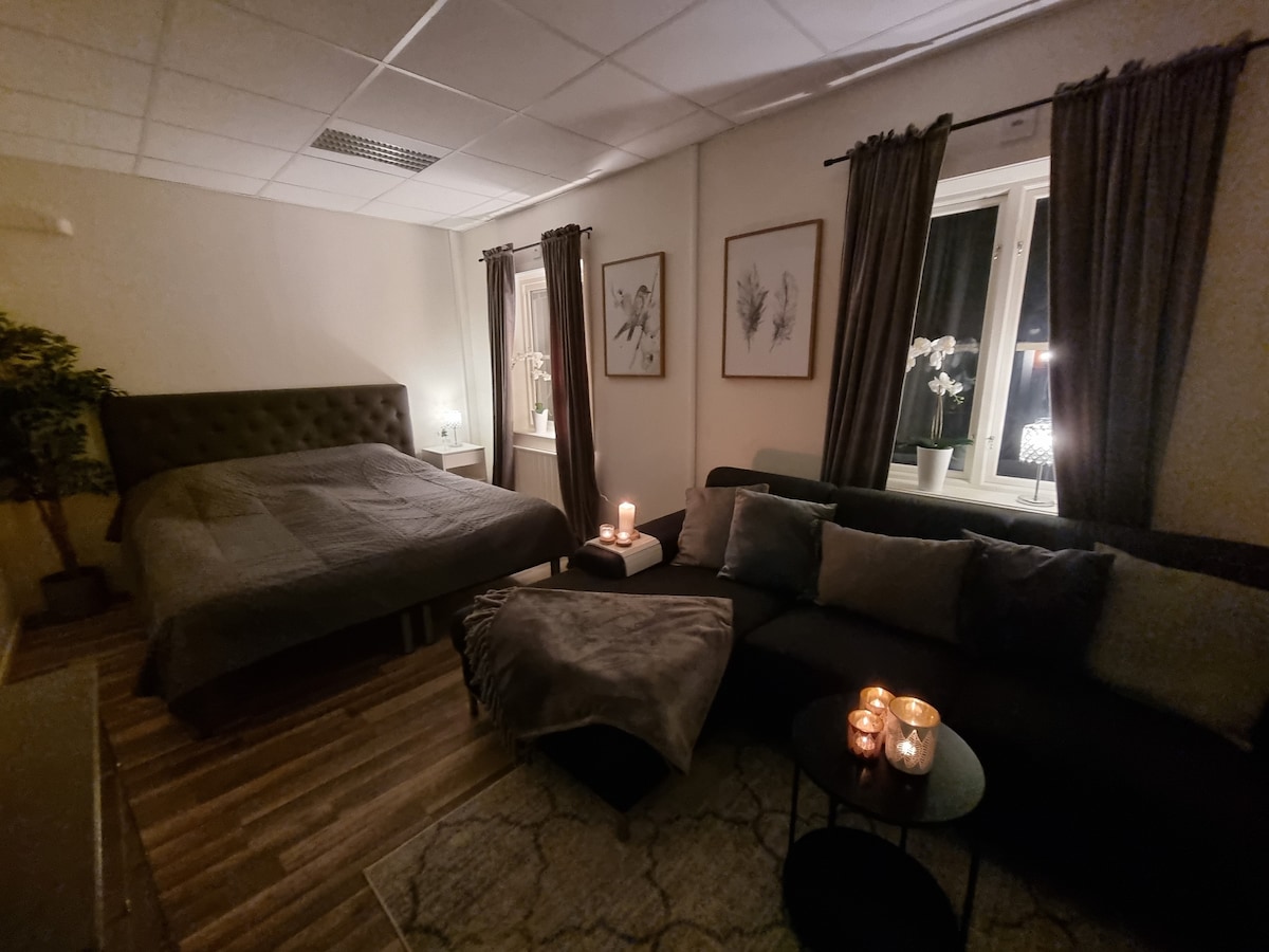 Studio in a central villa with a large park. Can host many dinner guests and 4 comfortable beds for overnight stay. +1 chair bed and a large sofa where +2 can sleep comfortable. Kitchen, toilet, shower, sauna, home theater, wifi, pool table & dart. Located in central Finspång in a park continuing to the "house of Finspong" from 1685. 100m to lake, 300m to center with restaurants, grocery stores, etc. Finspång has +360 lakes and invites to nature experiences. 20min to Norrköping, 50min to Linköp.