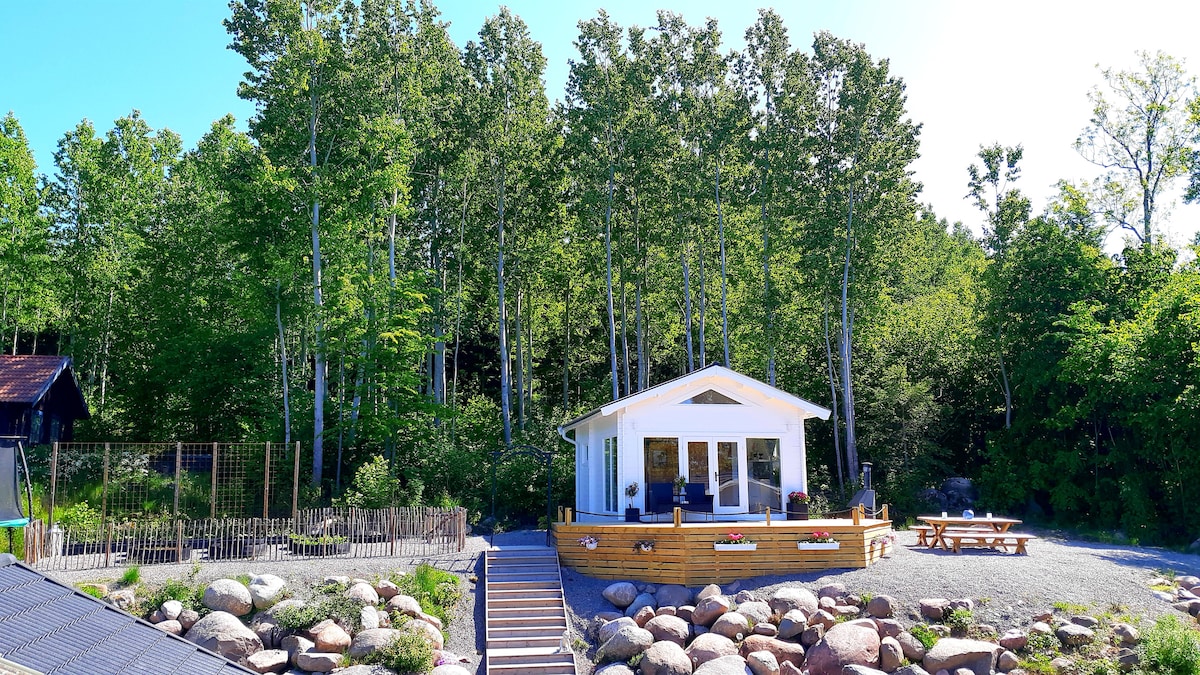 Här bor du fantastiskt vackert, precis vid sjön. Mycket enkelt boende, oisolerat och utan uppvärmning. Två loftsängar, 90 cm breda. Elektricitet finns. Ej belysning i huset (behövs inte på sommaren). Minikyl. OBS! Utedass (traditionellt svenskt torrdass) som delas med värden. Utomhusdusch som delas med värden. Sängkläder och handdukar ingår. Laddare för elbil finns, självkostnadspris enligt aktuell el-taxa. Frukost finns att köpa till. El och frukost betalas kontant eller med Swish.