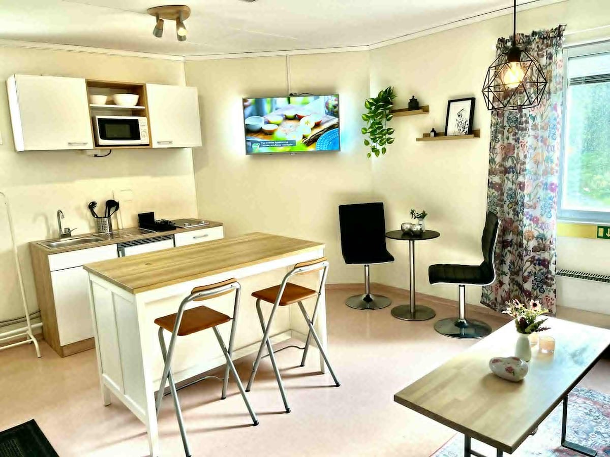 Nyrenoverad lägenhet på 65 kvm med utrymme för upp till 6 personer. Här finns bekväm 160-säng och bäddsoffa, samt tillägg av 2 ytterligare 80-sängar utifrån önskemål. Lummig utomhusmiljö och lantlig skandinavisk inredning med träpanel från golv till tak. Rofylld färgsättning med fullt utrustat kök, tvättmaskin och torktumlare. Gångavstånd till skog, 10-15 min bil till stan, 7 min till sjö, golfbana och gym. I trädgården finns uteplats, studsmattor, fotbollsplan, bär- och fruktträd.
