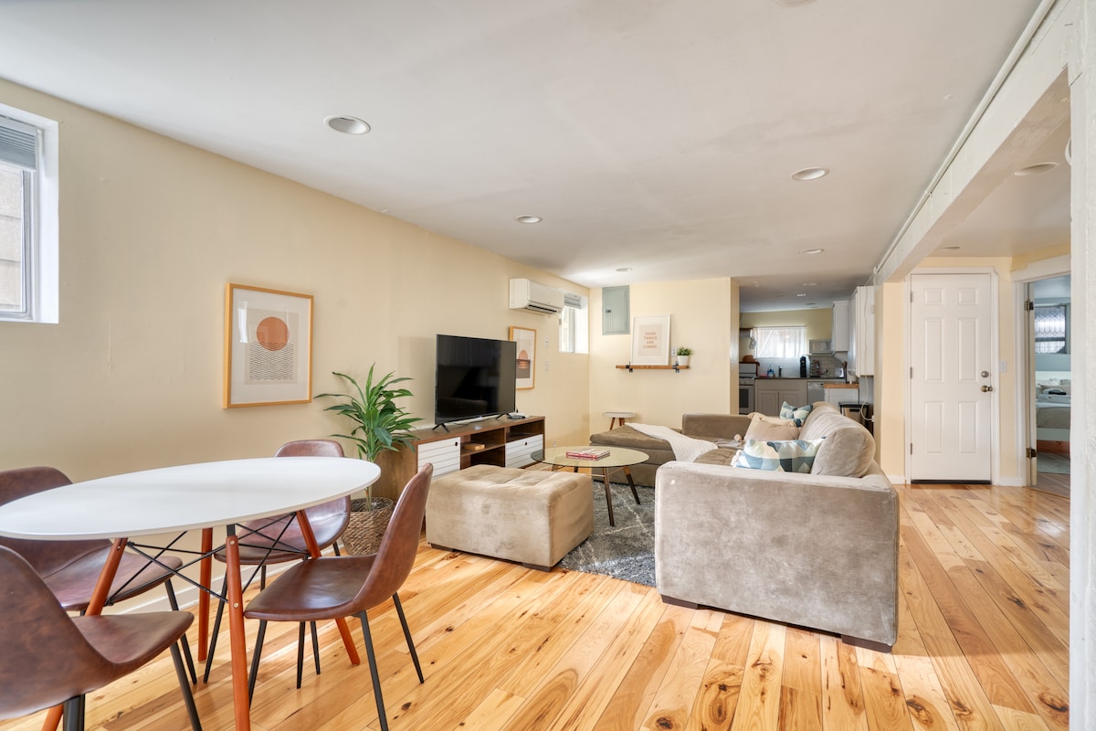 Beautiful and bright basement apartment with AC in relaxing Northeast Portland. The neighborhood has everything you could want with NE Williams Street a short walk away, easy access to the Rose Garden and the Convention Center, and a 10-minute bike ride to Powell's Books in downtown Portland. The community center across the street offers a full-sized pool and gym. Enter through your own gate into a backyard food forest, and enjoy a private entrance to your apartment. 'Just walk out' checkout