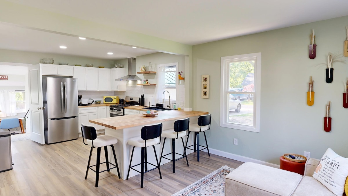 Plush, neutral, and cozy 2br bungalow awaits. With the ability to host 5 guests, your comfort is always top of mind. The 1st flr features new fold out couch, 55in Roku TV w/ Sling included. High Speed Fiber Internet, Dedicated work space! 2 brs on main flr w/ new memory foam beds (Q) & (Q). Finished rm in basement w/ additional couch & washer/dryer. Keurig Coffee. Large fenced in yard backs up to paved walking path - this home is purrrrfect for pets. Close to UT, Toledo Hosp. & suburbs.
