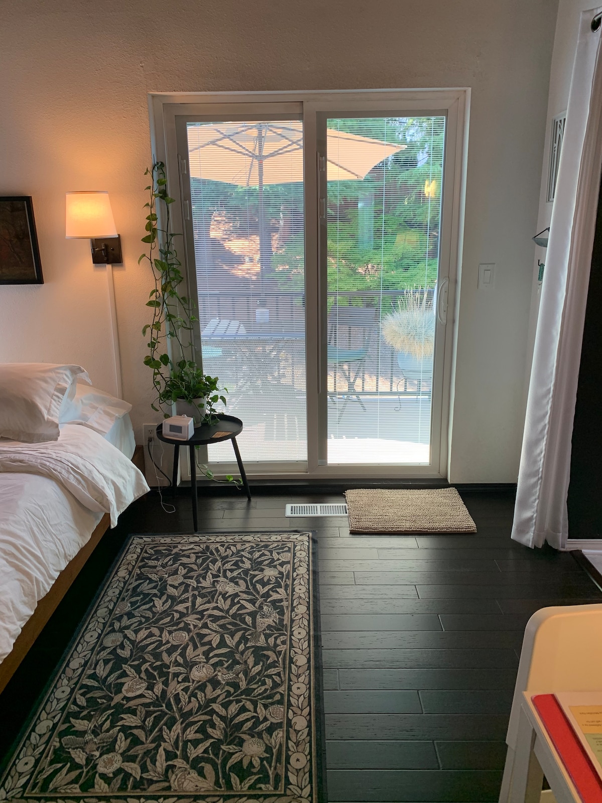 Explore the world-class restaurants, coffee shops and bars in the nearby Williams and Mississippi districts. Take a stroll around the award winning (and oldest) rose garden in the City of Roses across the street in Peninsula Park. At home, this second story studio has extra space in the meditation loft, a full kitchen, fast internet, and projector for streaming. Enjoy your private deck over the shared garden with hammock and H/C outdoor shower. Bus and train nearby with ample on-street parking.
