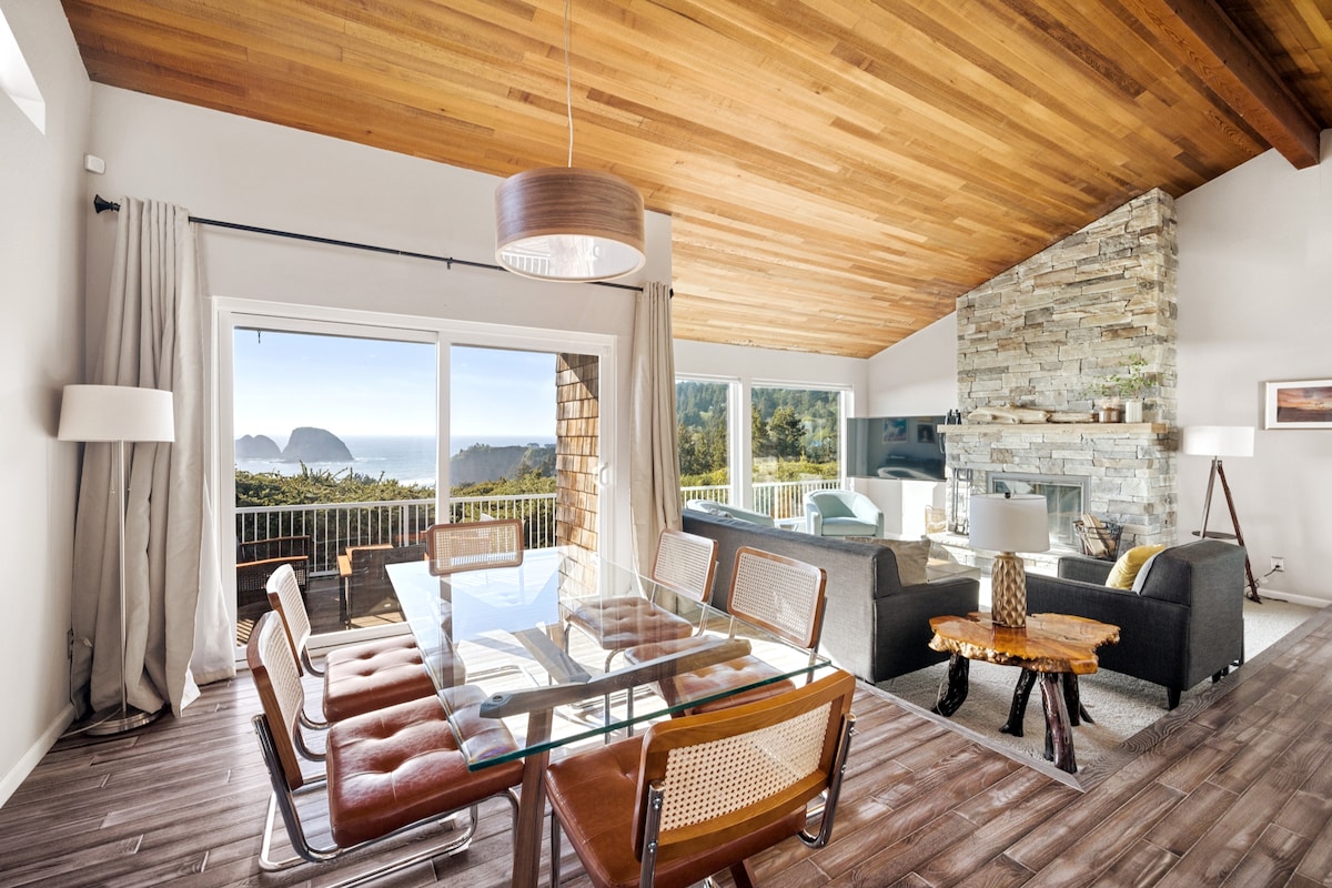 Our oceanview retreat is a special place. The stunning views, private balcony, and vinyl player with vintage records create a cozy ambiance. The fully-equipped kitchen, dedicated office space, and fast wifi make it perfect for work or vacation! The fenced-in front yard and hidden beach access provide a sense of privacy and adventure. And, of course, our dog-friendly policy means that furry family members can join in on the fun, too! Make unforgettable memories with us! 851 two two 000239 STVR