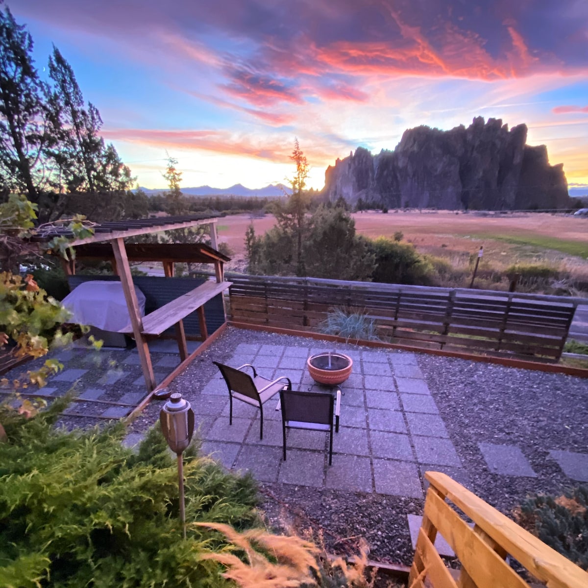 You'll enjoy the main house with the best views of Smith Rock and the Cascade mountains. Smith Rock State Park is literally across the street. A great location for outdoor activities at the park or in the region. Hike, climb, bike, walk or jog around the park. Sip tea inside and watch the animals. Perfect for artist and photographers. Relax on the deck or enjoy a sunset BBQ with gorgeous views. Owners live in adjoining unit. Separate entrance. Instagram: @smithrockgardens DCCA Tax# 1784