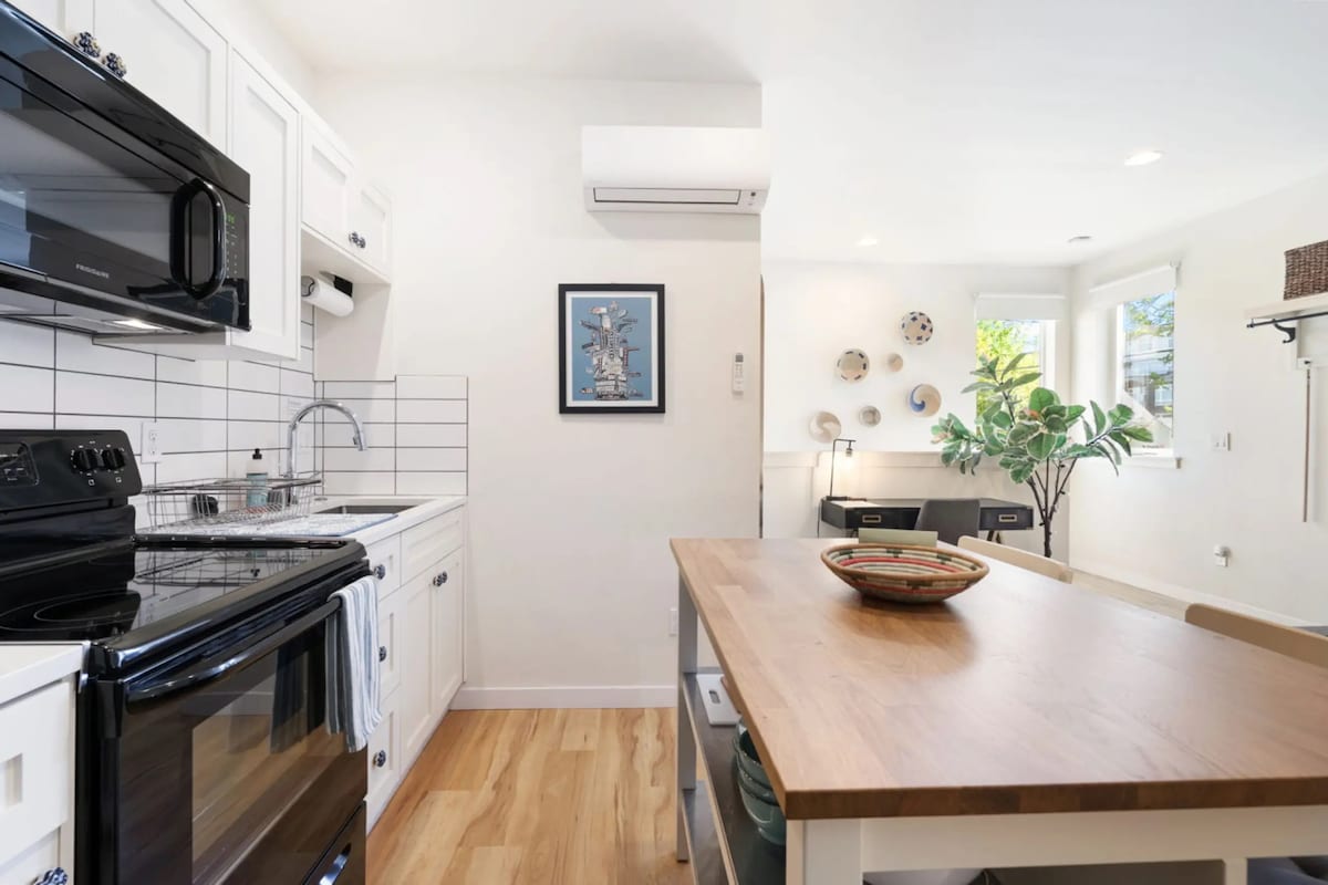 Explore our new, artist-built bungalow in Multnomah Village, Portland. This cozy space sleeps four with a queen bed upstairs and a pullout couch downstairs. Steps away are charming cafes, shops, and a park with hiking trails and dog parks. Enjoy local activities like bingo and dining on pet-friendly patios. Complete with essentials including laundry and a breakfast nook, this bungalow is perfect for both short and extended stays, offering a unique Portland experience.