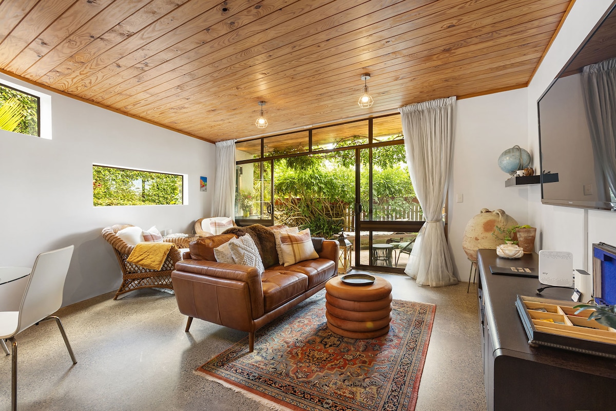 Near new property under our home, wicked sea views and lots of garden, 2 mins from the beach walking, to shops, bars and cafe's. Wheel chair accessible. There is a double bed and single swab for the floor if needed. plus, a double bed couch in the lounge. We have bassinet for small children Coffee and tea provided with full washing machine & kitchen. WiFi included. is fully catered for with everything you need. TV for your entertainment. Easy bus ride to Auckland City if you need too.