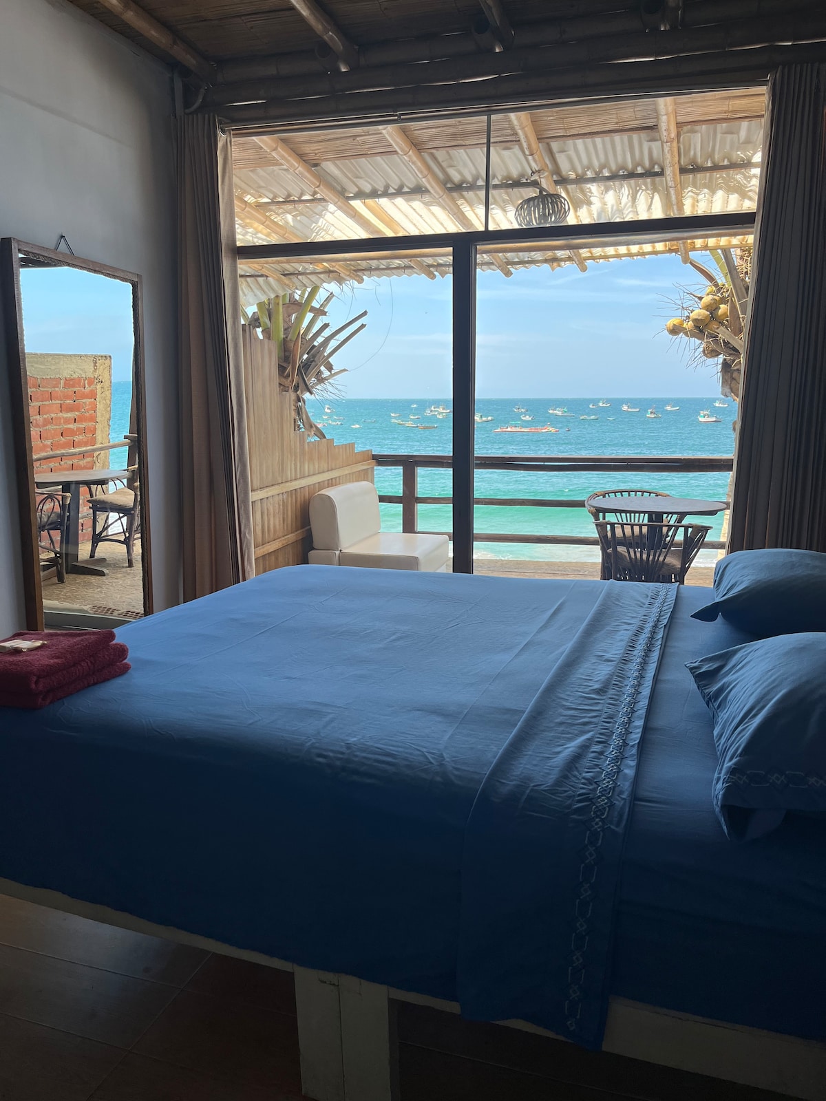 Disfruta de una escapada inolvidable en nuestro Bungalow Lino, un rincón lleno de calma. Despierta con el sonido de las olas, saborea un cafecito en tu terraza privada con vista al mar y disfruta de atardeceres mágicos. Amplio y con un encanto bohemio y rústico, ofrece acceso directo a la playa, un delicioso desayuno incluido y una cocina equipada. Pensado para quienes buscan desconexión y serenidad: aquí, el único sonido es el del mar.