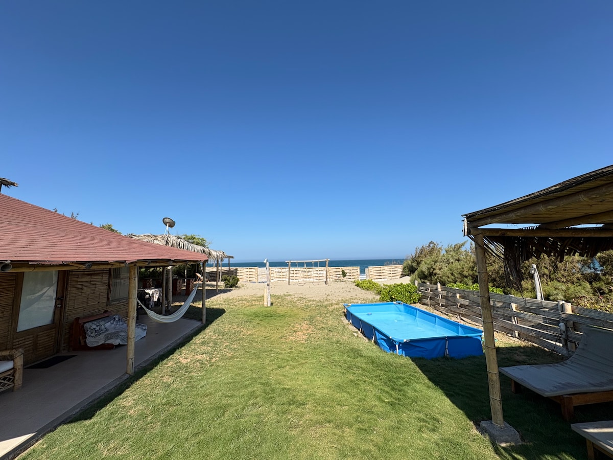 Es un bungalow de 2 dormitorios para 6 personas a pie del mar con un kitchenette muy cómodo, y una acogedora y amplia terraza, y rica piscina recirculada, escuchando las olas, mirando las ballenas y respirando aire fresco. Campo y playa a tus pies. La vacación perfecta! El número de habitaciones disponibles es 2, dependerá del número de huéspedes en tu grupo. El bungalow es solamente para ustedes y nadie más. Tendrás una estadía inolvidable de mar tibio y playa exclusiva para tu grupo.