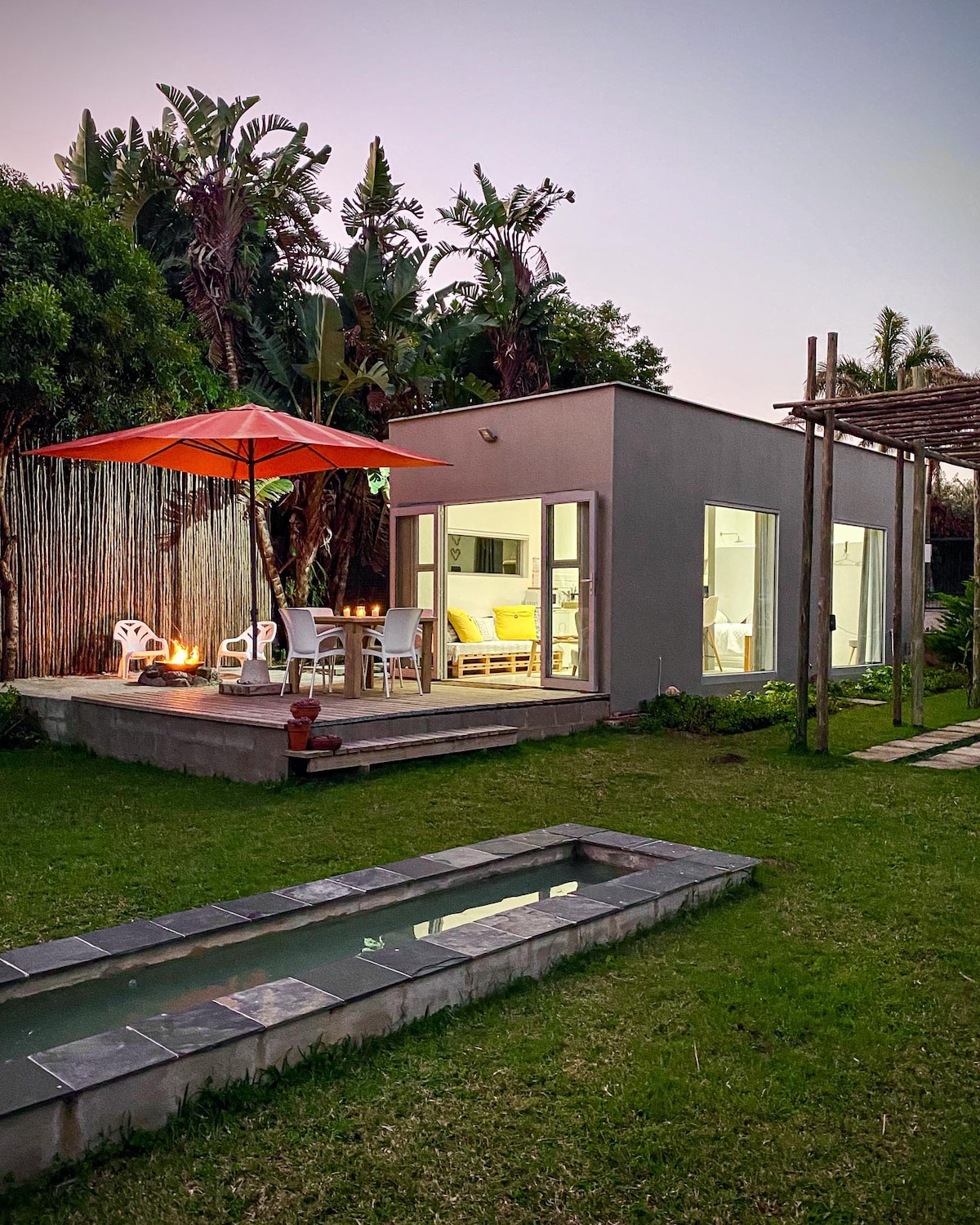 Lovely modern self-catering cottage set in a huge beautiful garden right on the beach. Enjoy a glass of bubbly on the deck. Ideal for a romantic getaway. Although no sea view from the unit itself you can fall asleep while listening to the waves crashing at night. Lovely tidal pools to bathe in or to fish. The main Blue flag beach is a short stroll away. The kitchen is well equipped and there is a firepit, braai area outside in the private garden area. Owners willing to assist wherever needed.