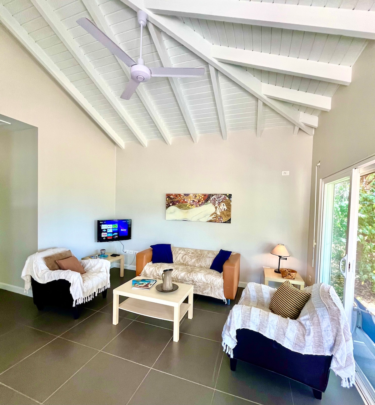 Villa Coco est une propriété conçue exclusivement pour la location de vacances, située dans la baie calme et paisible de Cul-de-Sac, face au célèbre îlet Pinel. La villa comprend 3 chambres : une chambre principale avec un lit king size et une salle de bain privée, et deux chambres partageant une salle de bain. L'une de ces deux chambres possède un lit king size, l'autre peut être aménagée avec un lit king ou deux lits simples/ L'une de ces chambres dispose d'une mezzanine avec un lit simple.