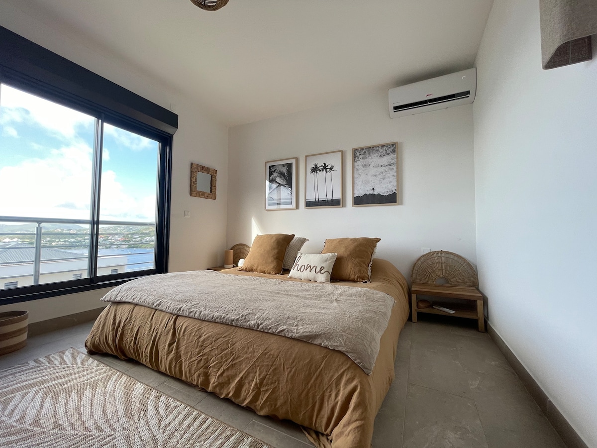 Situé au N° 100D rue du cap ,dans une résidence calme et sécurisée, vous pourrez vous reposer dans ce petit T2, profiter de la terasse couverte, de la cuisine équipé. Il propose également une salle de bain assez spacieuse, une chambre cosy, ainsi qu'un petit salon composé d'un canapé convertible en lit offrant ainsi un second couchage. Vous pourrez si vous le souhaitez, marcher 10 minutes jusqu'à la plage de la Baie Orientale et son village composé de différents commerces et restaurants.