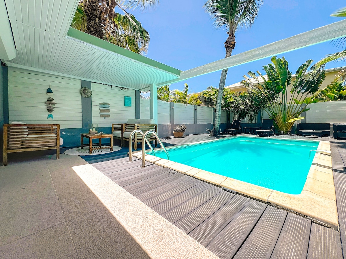 NEW Villa PRIVATE POOL and WATER TANK 6p In the heart of Orient Bay, Villa Ginger is located just steps away from the beach and restaurants On the ground floor, a fully equipped kitchen opens to the living room with a connected TV, a convertible sofa, a bathroom, and a toilet A shaded terrace with a dining area (high table), outdoor furniture, and a private pool Upstairs, 2 beautiful bedrooms with access to a large terrace (hammock), 2 private bathrooms, and a separate toilet. A/C wifi, parking.