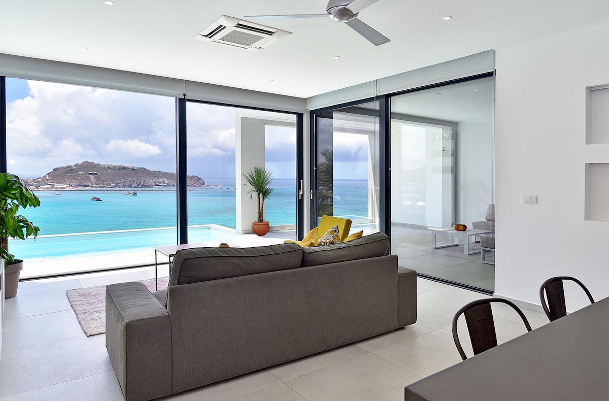 L'appartement de la Villa Stella vous accueille dans un cadre unique avec une vue spectaculaire sur la mer des Caraïbes. Située dans une résidence sécurisée 24h/24, la tranquillité est au rendez-vous. Vous serez à seulement 8 min à pied de la plage d'Indigo Bay et proche des commerces et restaurants de la partie néerlandaise. Composée de 2 chambres et de 2 salles de bain, vous pourrez vous détendre dans la piscine/jacuzzi surplombant la baie .