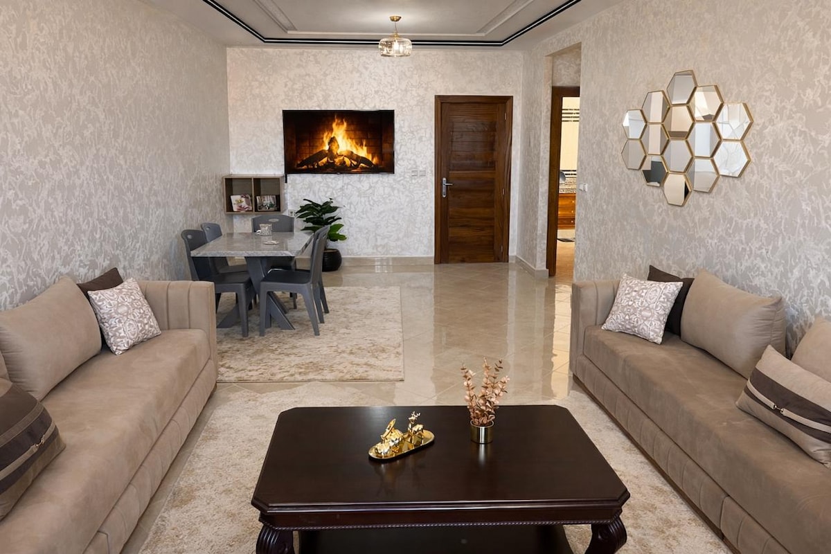 ✨ Luxury apartment in the heart of Nador, 2 bedrooms with master suite and 2 bathrooms. Stylish living room, fully equipped kitchen, high-speed WiFi, and smart TV. Close to the sea, boulevard, cafes, restaurants, and shops. Perfect for families, couples, or business travelers. Comfort, style, and prime location all in one!