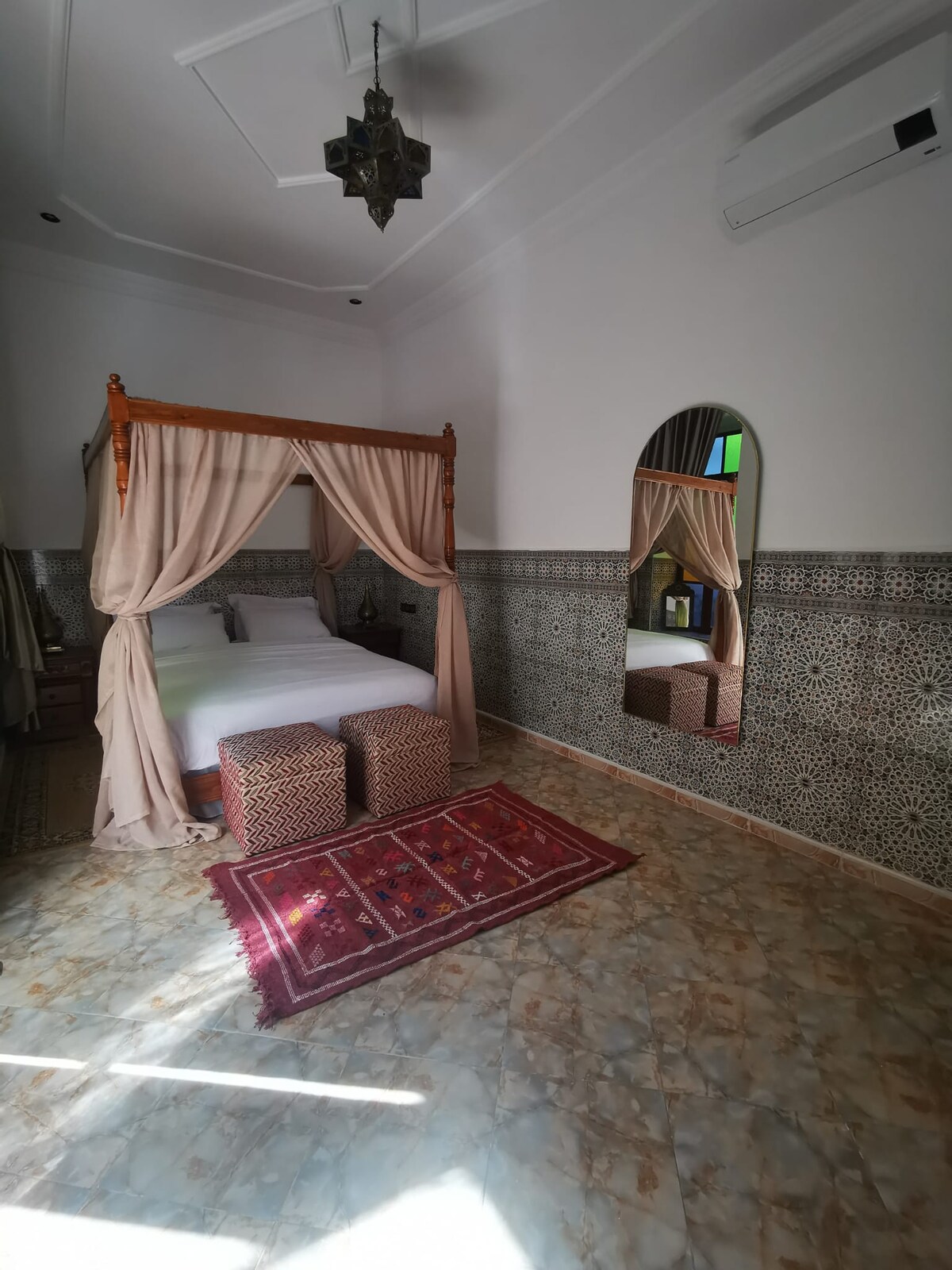 Découvrez la chambre double - KENZA de Riad Dar Al Fassia, un espace paisible niché au cœur de la médina d’Oujda. Cette chambre spacieuse dispose de sa salle de bain privative et d’un accès direct au patio central, véritable lieu de détente avec salon et salle à manger. Profitez du calme et du charme traditionnel marocain, tout en étant à deux pas de la place Bab Sidi Abdelouahab. Idéale pour une escapade en solo ou en couple, la chambre est équipée pour un séjour serein et authentique.
