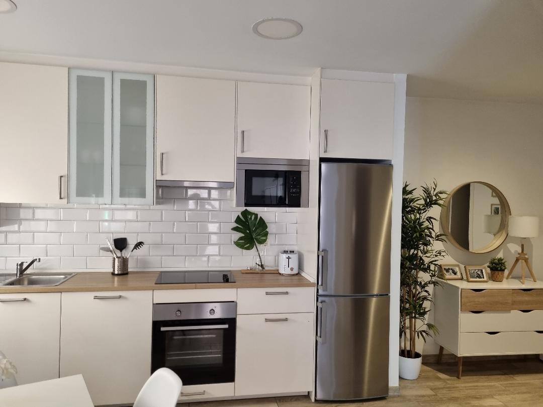 Fantástico piso todo exterior con vistas a toda la Sierra del Cuera. Con Wifi y GARAJE incluido. Zona tranquila fuera del bullicio pero muy cerca del centro. A 5 minutos del centro y a 8 minutos de la playa y del puerto. Cuenta con SmartTv de 43', monitor de trabajo de 27 pulgadas con HDMI, fibra 600MB Orange, lavadora, lavavajillas, Kettle, horno, microondas, Dolce Gusto, cafetera americana e italiana, exprimidor, tostador, plancha y paraguas. PLANCHA PELO Y SECADOR Sofá-cama de 140 cm.