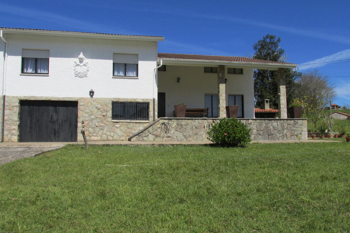 Quiet vila with 5000m2 land surrounded by nature. It's located 2 Km far from Ribadesella's downtown and the beach, and 10 min walking from public tennis courts. It has 4 bedrooms (2 with queen-size beds and two with twin beds), a loft office space, two bathrooms, kitchen, a porche with gorgeous views, a BBQ and a garage. Registered property: VV-736-AS