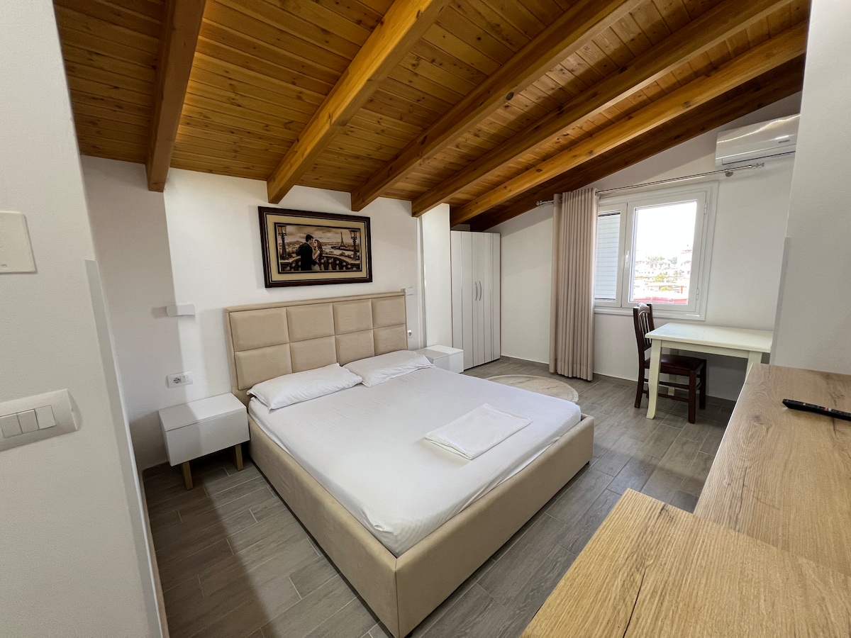 Promenade? Your walk is few steps away. In the heart of the Vlora, featuring beautiful views of the city and the bay. Spacious, clean and stylish. You want your time to be valuable? All you need to do is a 2 minute walk and then you are in the seaside or in the center of Vlora. It's your decision! We provide transportation at a good price!!