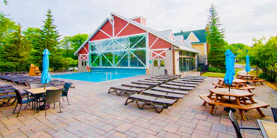 Escape to Carriage Club Resort, nestled on rolling hills near Horseshoe Valley. Our 1-bedroom vacation rental sleeps 4 with a king-size bed and pull-out sofa. Enjoy the pool, firepit, volleyball, gym, and nearby skiing, golf, and Vetta SPA. Explore hiking trails, high ropes, and a 15-minute drive to Bass Lake's beach. Experience adventure and relaxation at Carriage Club!