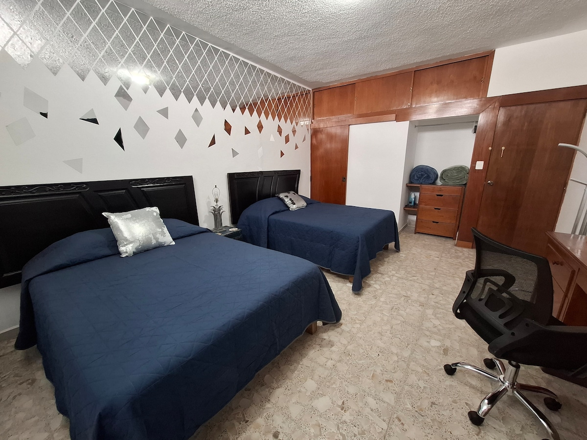 En el Centro de Orizaba, a tres minutos del Poliforum, para que sea muy fácil planear tu estancia. Disfruta del confort de la Suite que incluye aire acondicionado, una cama king size con colchón premium, plancha de ropa, secadora de cabello, pantalla, área de trabajo, guardarropa, Wifi y baño privado. Además de áreas comunes con jardín, baño, alacena con llave en la cocina para cada habitación, cocina equipada, sala, desayunador, comedor y Wifi en todas éstas áreas.