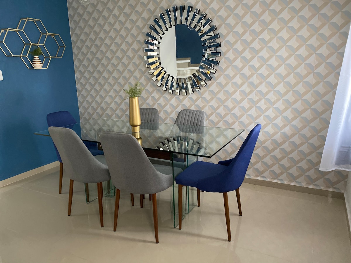 Lleva a toda la familia a este acogedor lugar que permitirá tener su propio espacio climatizado para cada quien, disfruta de una zona tranquila y cercana a las mejores atracciones de la ciudad. A 2 minutos de Plaza Valle. Restaurantes, farmacias y supermercado cerca. A 5 minutos de Casa Vegas, tobogán de la montaña, parque de dinosaurios, parque de las sonrisas. A 10 minutos de Ojo de Agua y Poliforum.