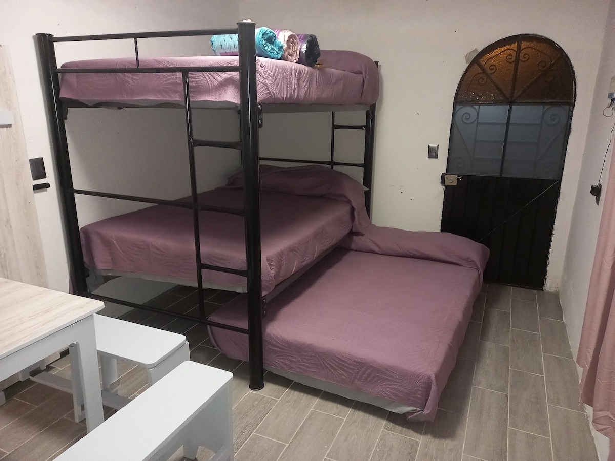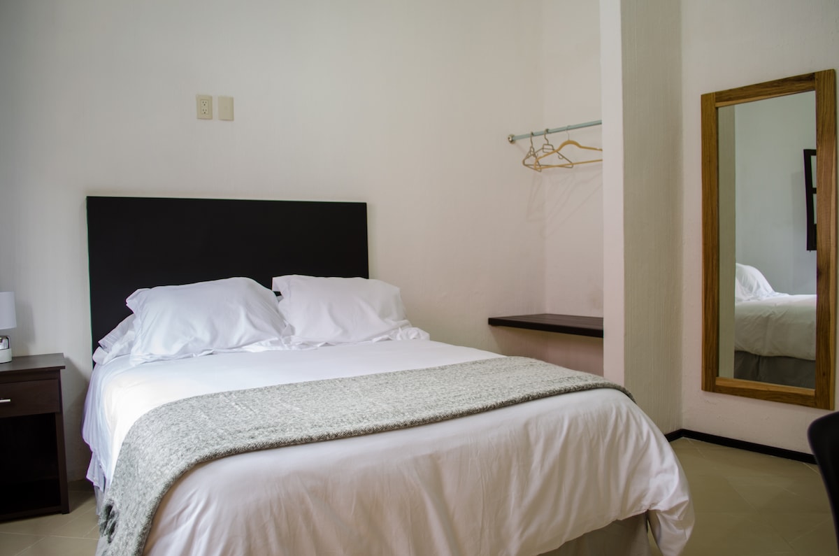 Disfruta de la sencillez de este alojamiento céntrico. ¡Excelente opción para explorar este pueblo mágico! La habitación con entrada independiente es acogedora y limpia, y su ubicación céntrica te permite acceder fácilmente a los principales lugares turísticos. La zona es segura y tranquila, ideal para descansar con aire acondicionado después de un día de exploración. ¡Altamente recomendado! Ubicado a 100 metros de los Autobuses "Astro" y a doscientos metros de los Autobuses de Oriente "ADO".