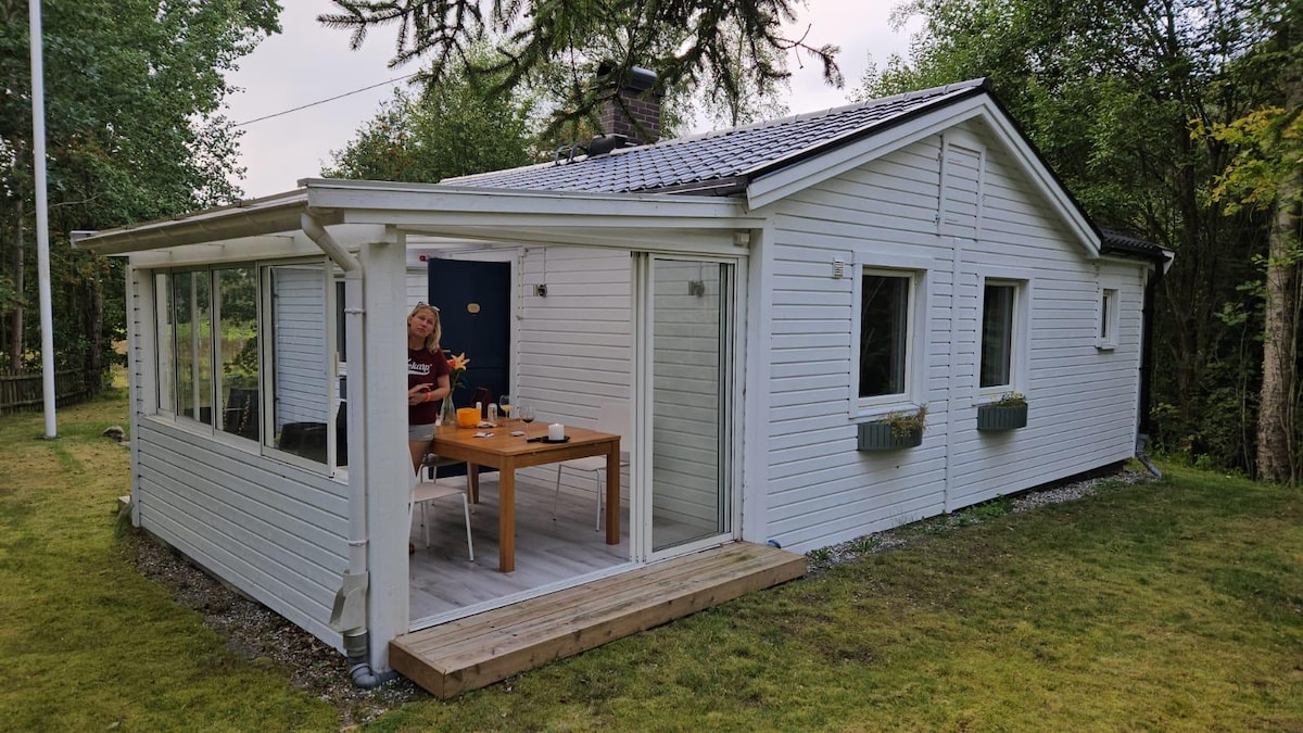 En oas att njuta på för 1 par. Slappna av i ett unikt och lugnt boende. Städning och sängkläder/handdukar ingår Endast ett mindre barn tillåten Renoverat stuga nära skog och sjö. Frukost till några dagar. Stugan optimal för er som önskar komma bort lite. Enkelt och bekvämt och lika mysigt och fint sommar som höst, vår eller varför inte vinter. Brasa, grillplats, uteplatser i alla väderstreck, utedusch och spabad/badrock samt cykler. Några av alla njutbara föremål som finns