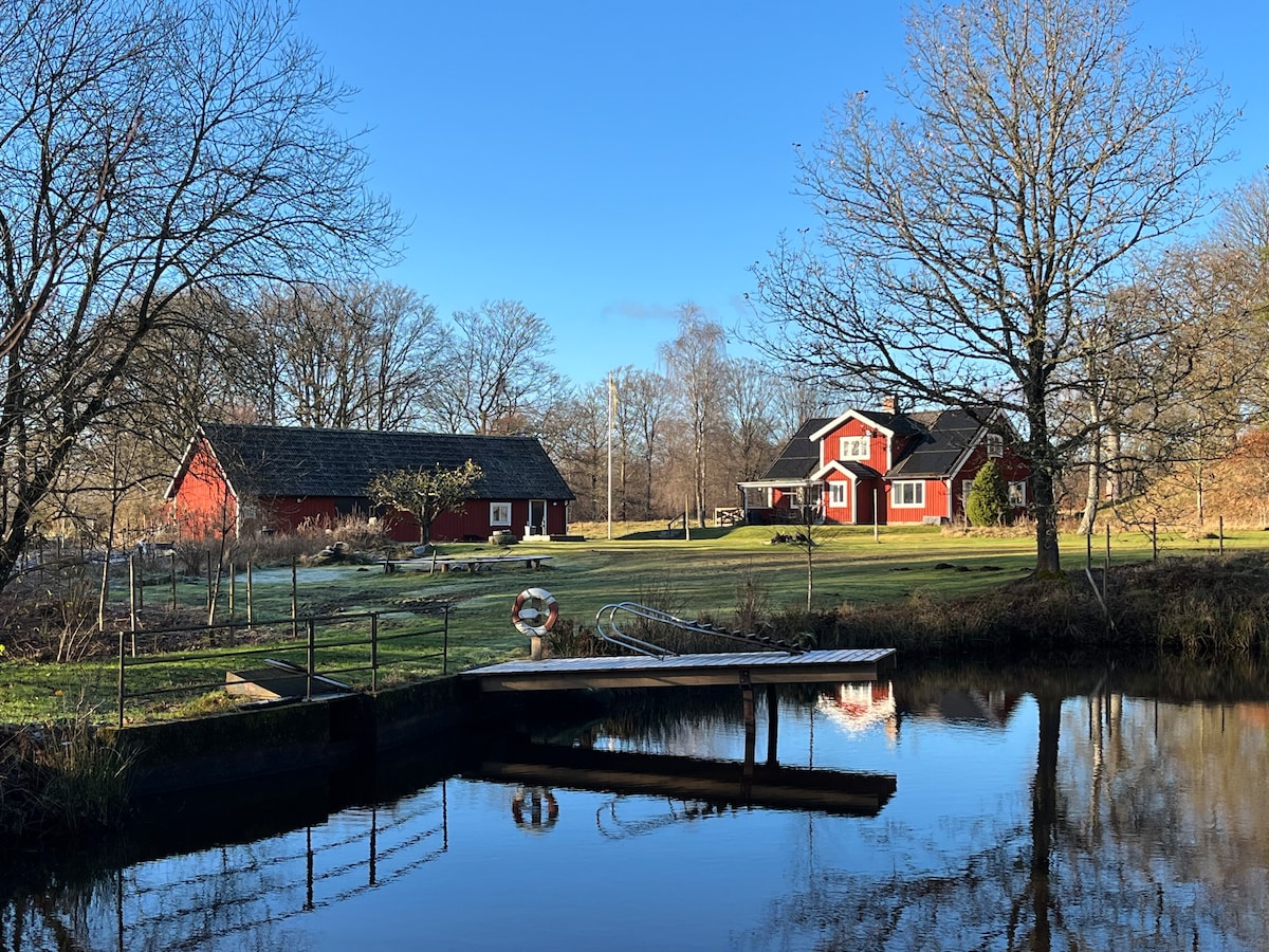 My house is adorable, next to a lake. It's peacefull, lots of windows. You can take the canoe , paddling ower the lake, or just sit and relax on the deck. Cold days, sit inside by the fireplace, read, eat a nice dinner in one off the rooms with windows owerlooking the lake. Small bedrooms,leaning walls , give you a feeling off going back 100 years in old sweden, when the house was built. You can not swim from my garden, but 200m from my house is a beach. My house is in a small village.