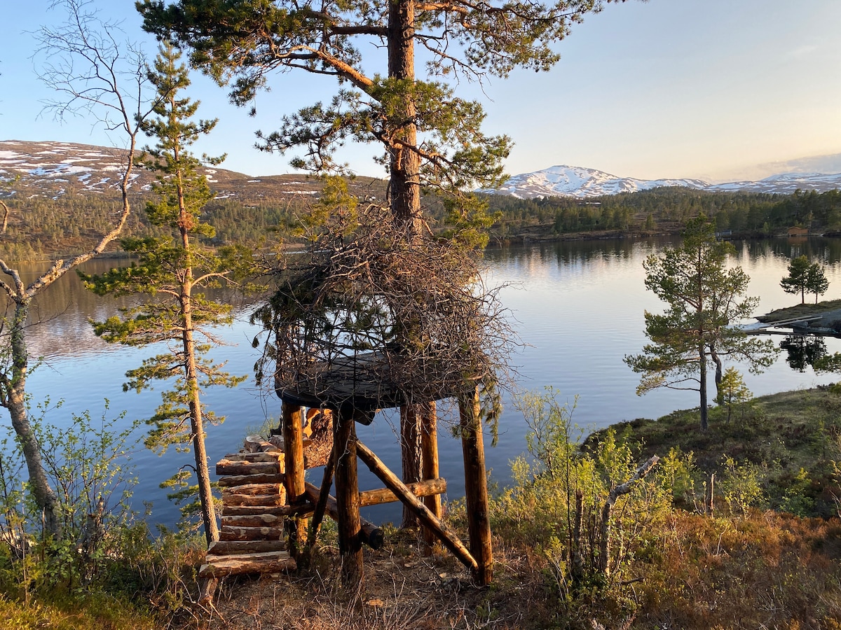 Vakker hytte ved sjøen