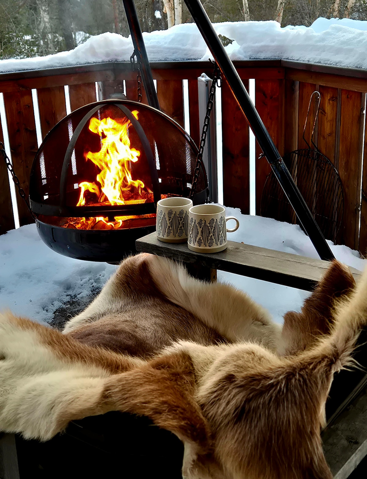 全景景观、热水浴池、现代4卧室小木屋。