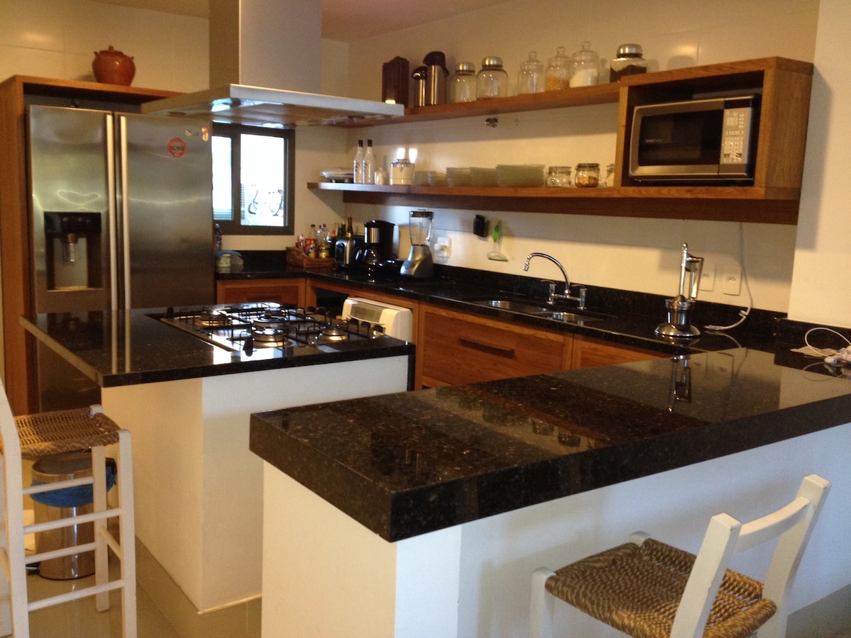 A casa é muito gostosa. É muito clara e arejada. Nela há 4 amplas suites bem decoradas com ventilador e ar condicionado split. Nas duas suítes com cama Queen há secador de cabelos nos banheiros. Há mezanino com um sofá cama, salas de estar e jantar, uma aconchegante cozinha americana com fogão em forma de ilha, 2 varandas e um terraço que dá para um maravilhoso jardim. São 3 vagas de garagem.O condomínio é maravilhoso! Há uma enorme piscina com deck molhado e raia para natação.