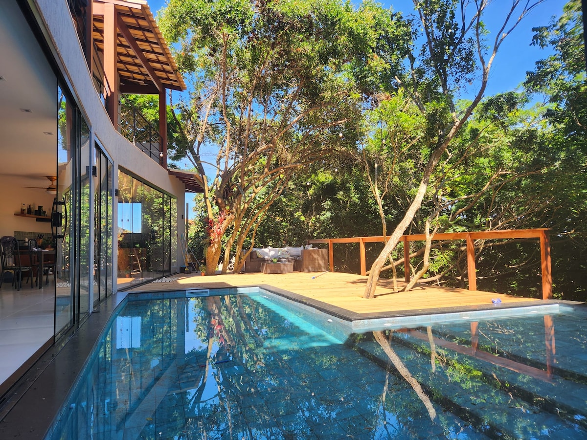 Exclusive house in Búzios, perfect for couples, friends or family. 4 suites with A/C, fiber Wi-Fi, pool and BBQ. Walking distance to Ferradurinha, Praia dos Amores and Geribá beaches, and near chic Porto da Barra. We can recommend staff for breakfast, cleaning or a private cook (optional). Comfort, nature and the perfect location for an unforgettable stay.