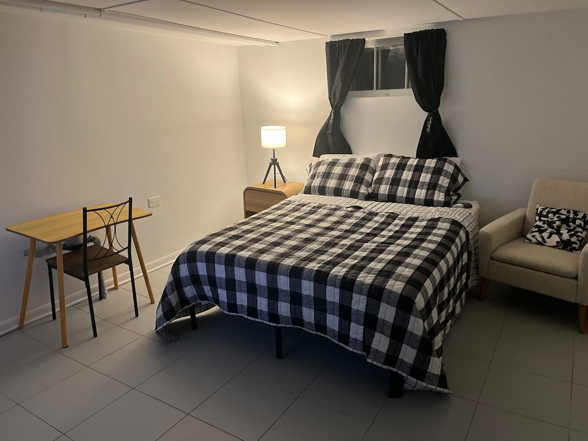 Description: House: Recently renovated basement with two spacious bedrooms, fully equipped kitchen, bathroom, and its own entrance through the driveway. All TVs are Smart. Neighborhood: Located in Alsip/Chicago, on a quiet cul‑de‑sac, 5 minutes from I‑294 and 10 minutes from I‑57, 30 minutes from Downtown. Peaceful, family‑friendly area. Parking: Available in the driveway or on the street. Note: We live in the unit upstairs. Rules: One small dog allowed. No parties. No smoking inside.