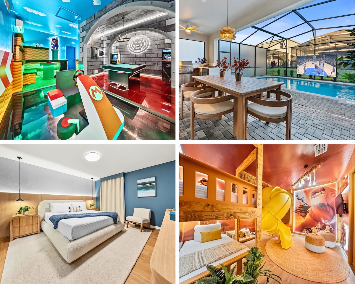 6 间卧室 / 4.5 间卫生间,豪华迪士尼风格装饰,带私人游泳池和度假村设施