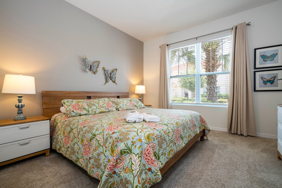 This recently renovated townhouse boasts a modern kitchen, upgraded bathrooms, and fresh paint throughout. Located within the gated community of Regal Palms Resort & Spa, residents enjoy access to a water park. The property is conveniently just a short drive from Disney World. With 1,846 square feet of space, the townhouse features 4 bedrooms and 3.5 bathrooms, comfortably accommodating 8 or more guests.