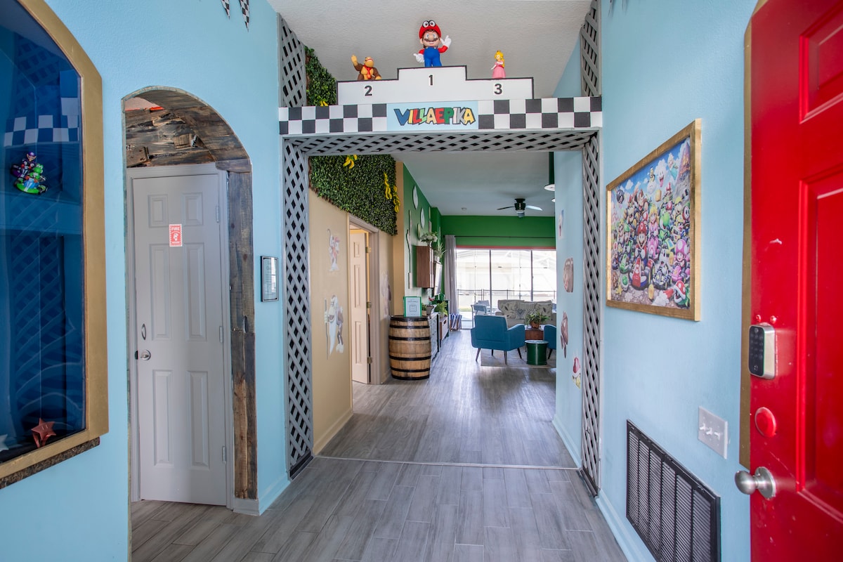 Relax, power up, and make unforgettable memories at this Mario themed 4-bedroom vacation home, perfect for families and groups. Enjoy a sparkling private pool, outdoor BBQ grill, and the comfort of a secure gated community. Located just minutes from Walt Disney World, with easy access to US-192 and US-27, you’ll be close to outlet shopping, world-class dining, and top attractions. After a day of adventure, unwind in your own playful themed retreat. Pool heating available for an additional fee.