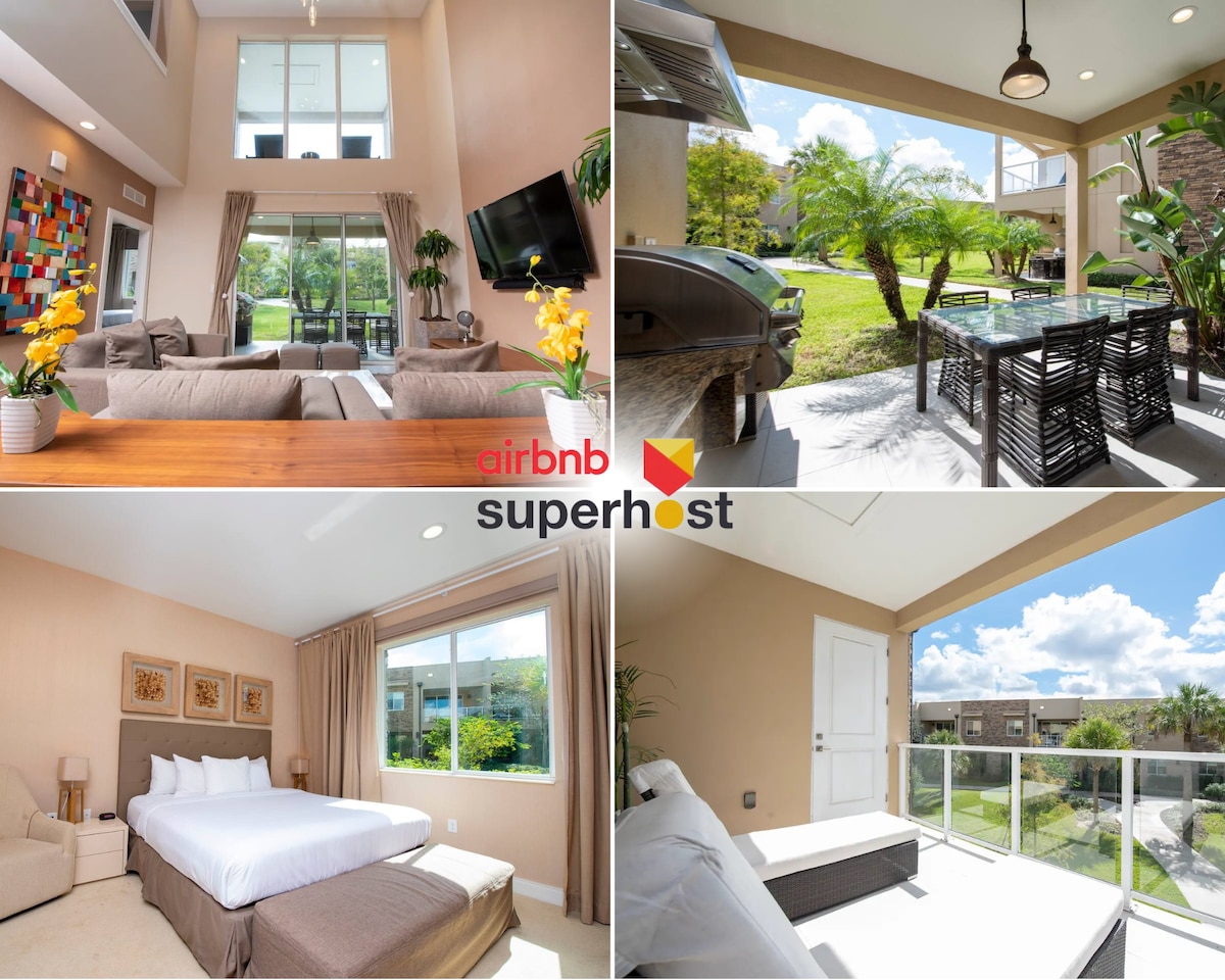 豪华4卧全套房,带烧烤设施,距离迪士尼仅几分钟车程!