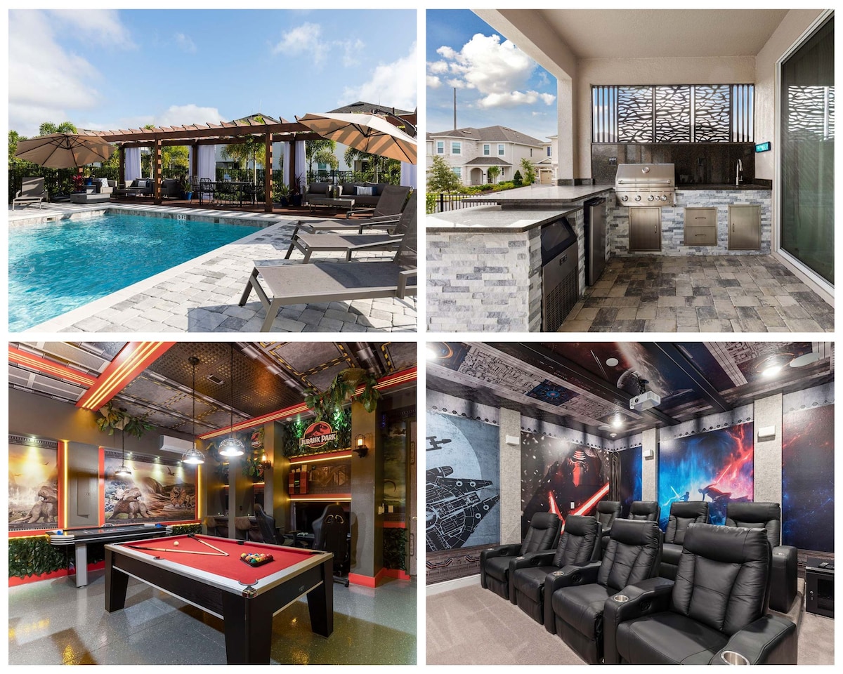 豪华9床带泳池、电影、游戏,毗邻迪士尼