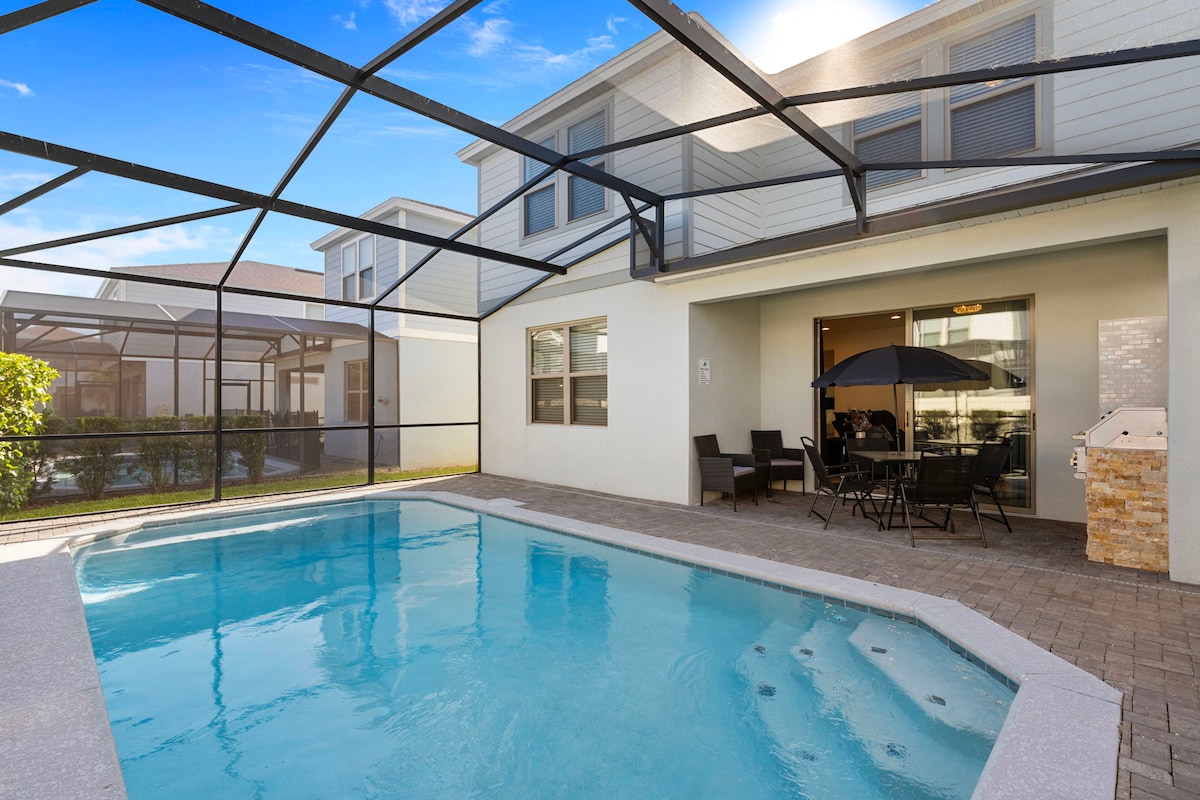Unable to book this house? Don't worry! Check my profile for similar homes that might suit your needs. WE HAVE A 24/7 CUSTOMER SERVICE! Escape the routine of visiting the parks every day and step inside of this brand new house with 3,014 sqft, 5 bedrooms, private pool&spa, and a game room specially designed to entertain your family. You can also have some fun at the Clubhouse, which offers a bar/restaurant, a big pool with water slides, a lazy river, a spa, a gym, a playground, and mini golf.