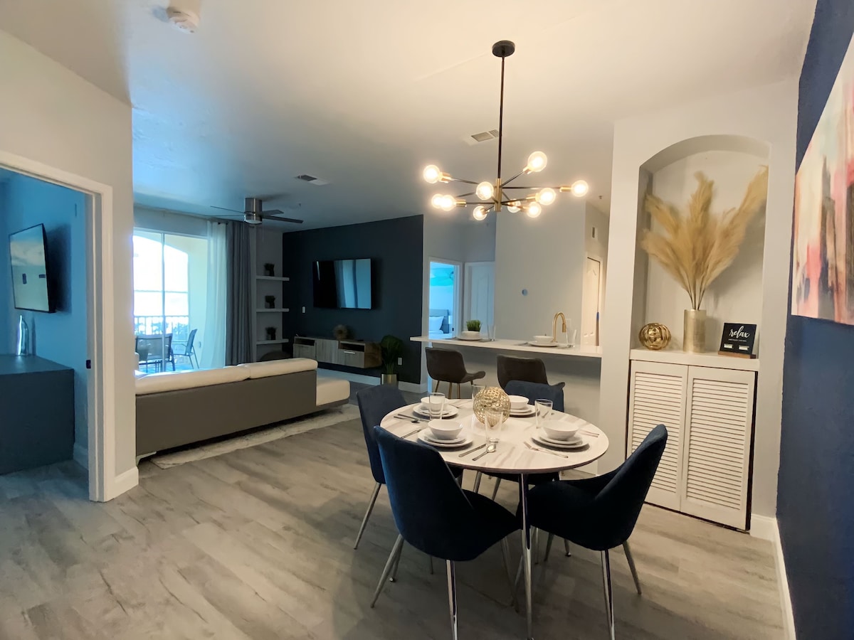 Welcome to our stylish oasis in Kissimmee, which seamlessly blends sophistication with a laid-back vibe. Your stay begins in a professionally cleaned apartment for your full enjoyment. Discover resort-style amenities – a sparkling pool, a fitness center, and hammocks, offering the luxuries of a five-star retreat. Conveniently located with in walking distance of theme parks, restaurants, and shopping. Book now. We can't wait to host you in our little slice of paradise!
