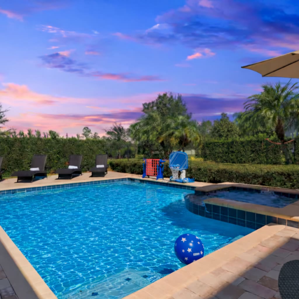 Welcome to your 3,400 sq ft luxury escape just minutes from Disney World! Perfect for families and friends, our villa sleeps 12 with ensuite bathrooms in every bedroom. Enjoy the home theater, game room, and a fully equipped kitchen—plenty of space to gather or relax. Close to shopping, dining, and all the Orlando magic. Book now for unforgettable memories in your private Disney-area villa.