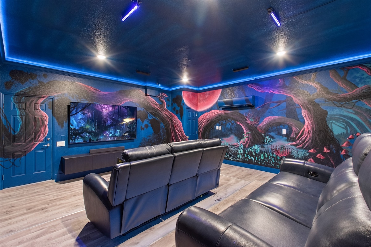 Escape to an unforgettable Disney Adventure, just 9 miles from Walt Disney World! Perfect for Mario Bros, Moana & Princess Peach fans. Enjoy themed rooms, cozy bedding, and a private pool. Indulge in movie nights in our Mario Bros theater! Bring the whole family, including pets, and make magical memories. 9 miles to Walt Disney World 🎢 16 miles to Sea World 19 miles to Universal 27 miles to MCO (Orlando International Airport) Join Us for an Unforgettable Disney Adventure! Learn More Below!
