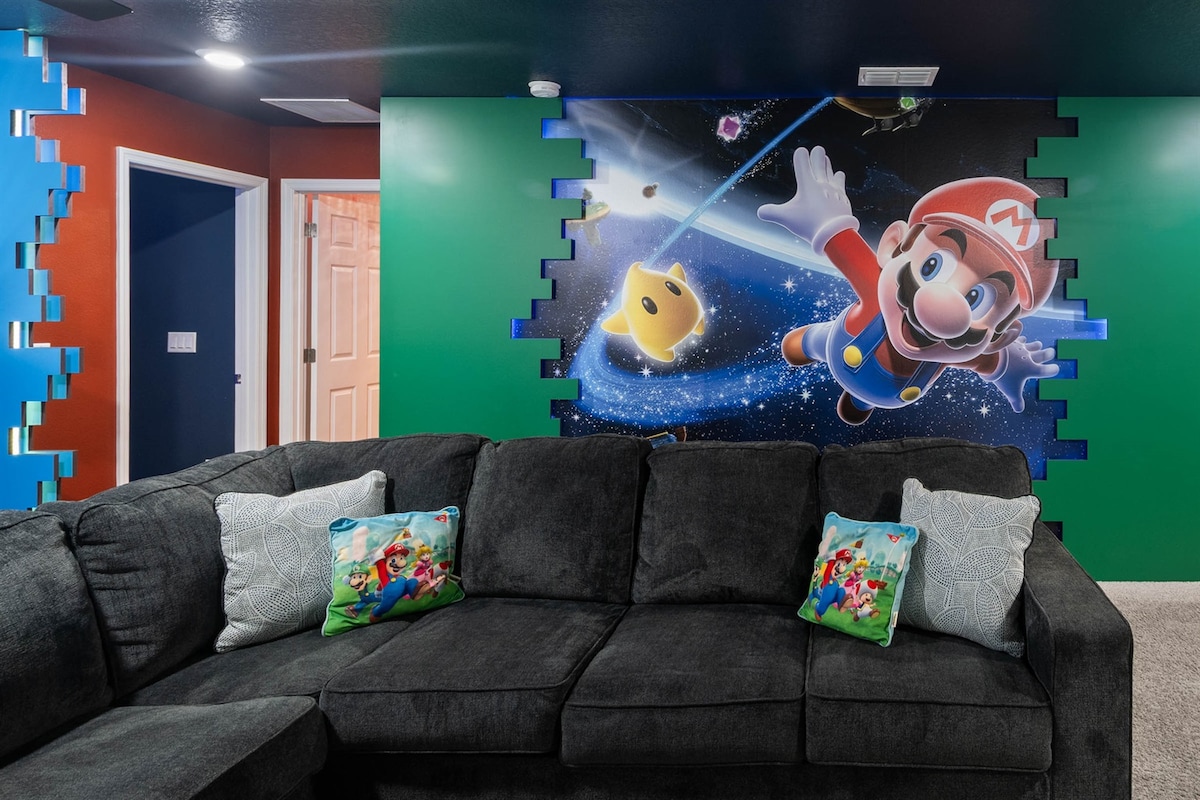 Welcome to your ultimate Nintendo getaway where every room is artfully and thoughtfully designed with a unique Super Mario theme. From custom decor to playful details, every corner is a tribute to the beloved world of Mario and friends. With classic Nintendo consoles at your fingertips, you’ll have everything you need to relive your favorite gaming memories in style. Unwind, play, and immerse yourself in the colorful world of Nintendo - TRUE SUPER MARIO ENTHUSIASTS ONLY :)